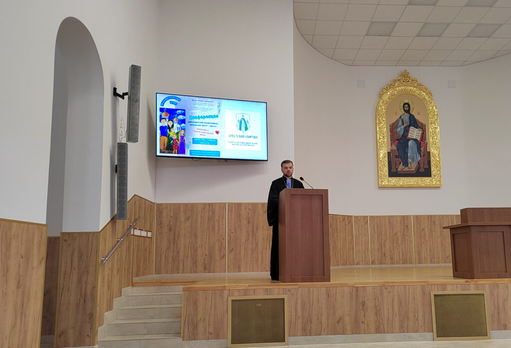 Со вступительным словом в начале конференции выступили: председатель отдела религиозного образования и катехизации протоиерей Евгений Лихота, председатель отдела по вопросам семьи, защиты материнства и детства Е.М. Морозова, которые рассказали о целях и задачах конференции.