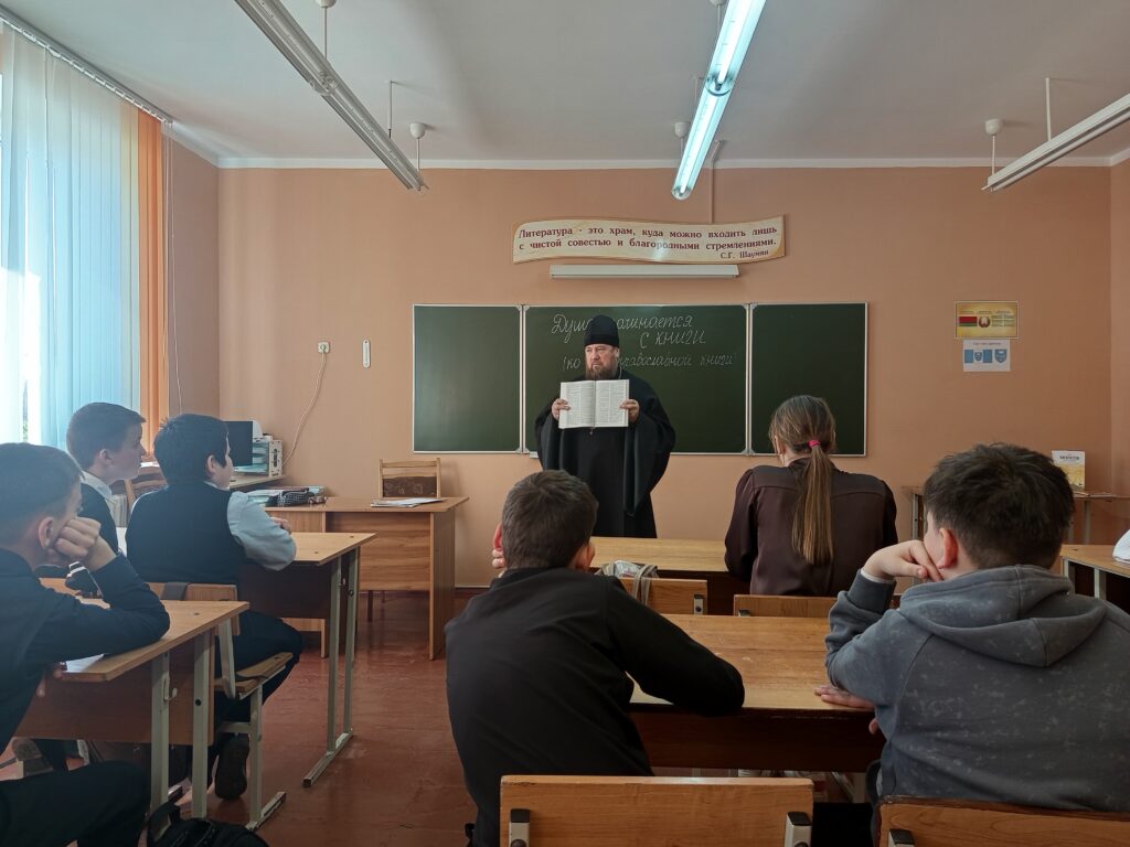 18 марта 2026 г. настоятель прихода храма Успения Пресвятой Богородицы в аг. Липники протоиерей Пётр Джига принял участие в мероприятии «Душа начинается с книги», которое проводилось ко Дню православной книги в ГУО «Липникская СШ им. Н. М. Попова». Мероприятие подготовила учитель русского языка и литературы Барщевская Ж.Е. для учащихся 6 класса, на котором присутствовала директор школы Савульчик Е.А. Учащиеся подготовили краткий экскурс в историю появления первых печатных православных книг и их значение в жизни человека.
