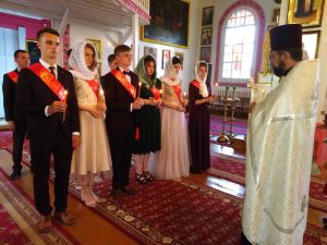 8 июня в средних школах Дрогичинского района состоялись выпускные балы. Свое прощание с детством многие выпускники начинали с посещения храма. Так поступили и вчерашние школьники городского поселка Антополь. Перед выпускным вечером они собрались у храма Воскресения Христова, чтобы, открывая новую страницу жизни, испросить Господнего благословения. Настоятель храма протоиерей Алексий Микулич в сопровождении хора отслужил молебен. По окончании молебна батюшка призвал ребят помнить о благодеяниях Божиих и благодарить Его за них, а так же стать достойными гражданами своей страны и опорой своим родителям.