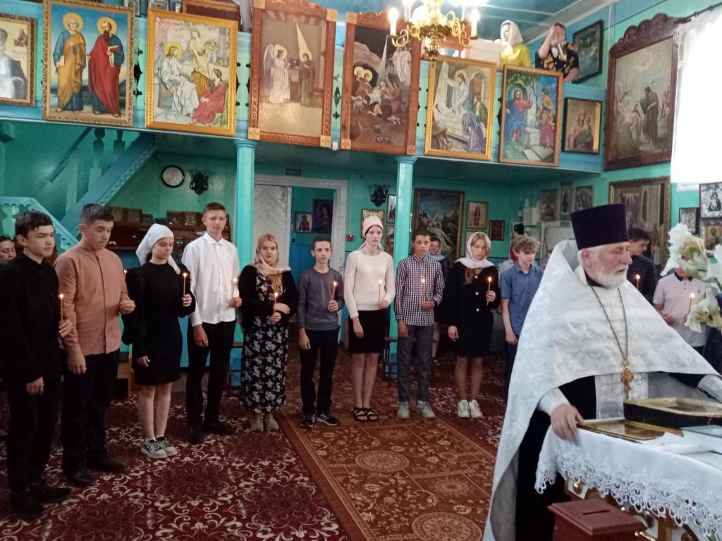 30 мая 2023 г. настоятель храма Преображения Господня в аг. Новая Попина протоиерей Василий Михновец совершил молебен перед началом экзаменов с учащимися 9 класса Новопопинской  средней школы