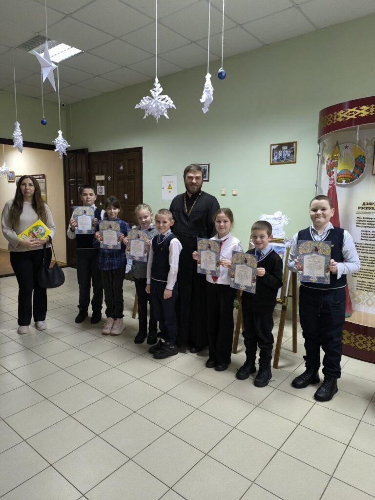 16 января 2025 года настоятель храма Покрова Пресвятой Богородицы в аг. Хомск иерей Иоанн Барановский вручил архиерейские Грамоты и сладкие подарки участникам творческого конкурса «Красота Божьего мира», а также выразил благодарность преподавателю ГУО «Хомская школа искусств» Ольге Михайловне за труды пожелал Божией помощи.