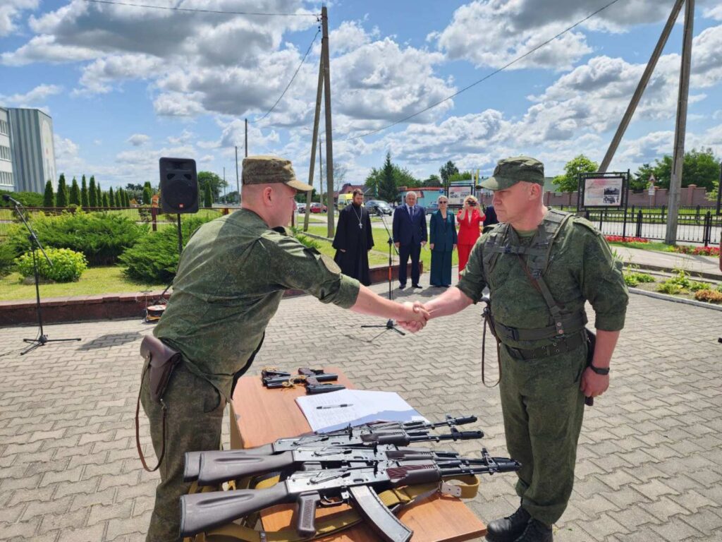 20 июня 2025 года у памятного знака «Партизанская слава» у военно-исторического музея имени Д.К.Удовикова состоялась церемония принятия воинской присяги и вручения оружия военнообязанным, прибывшим на военные сборы в военный комиссариат Дрогичинского района.