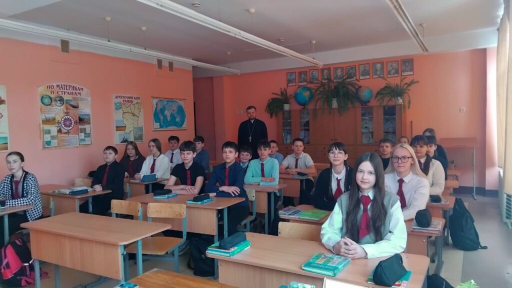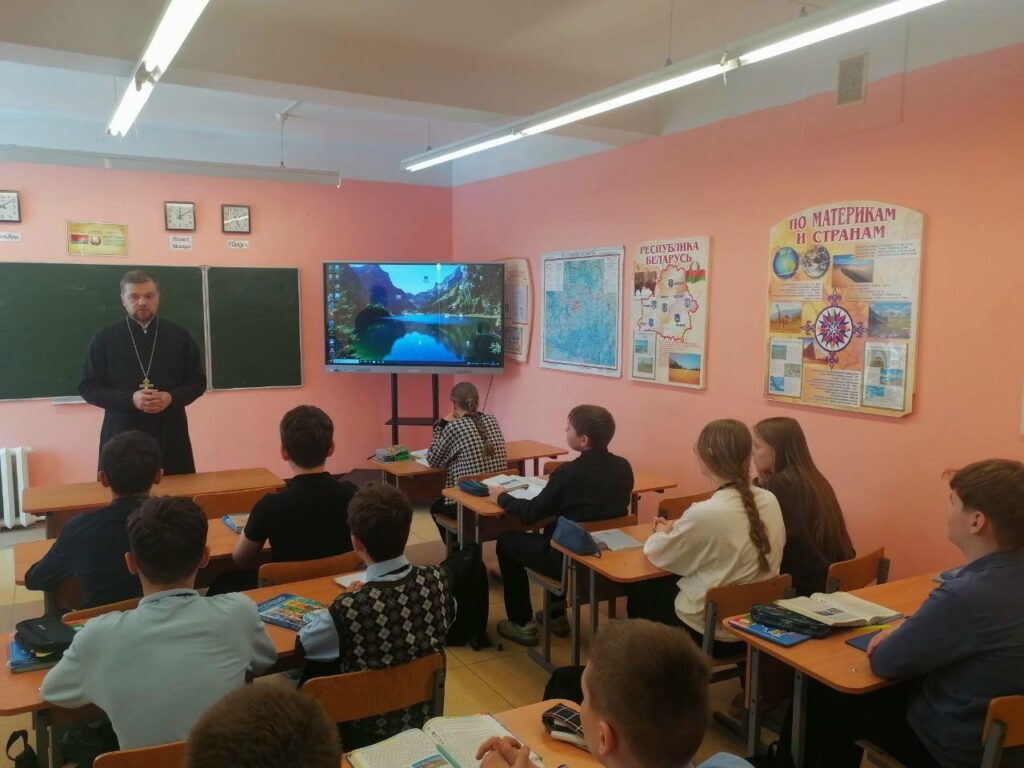 18 февраля 2026 г. в средней школе №1 г. Дрогичина прошла встреча учащихся 8 «В» класса с клириком храма Сретения Господня в г.Дрогичине иереем Александром Полоско. Встреча была приурочена к приближающемуся празднику – Дню защитника Отечества. Тема встречи: «Нравственный выбор на войне и в мирной жизни».