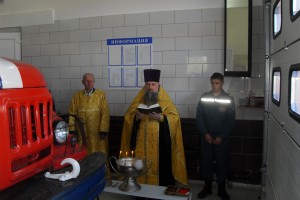 Завершив Чин освящения, иерей Александр обратился к начальнику поста и личному составу со словами поздравления по случаю введения в строй нового здания и его освящения. Настоятель пожелал присутствующим помощи Божией в дальнейших трудах, духовных и телесных сил, а также подарил спасателям-огнеборцам икону Божией Матери «Неопалимая купина».