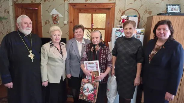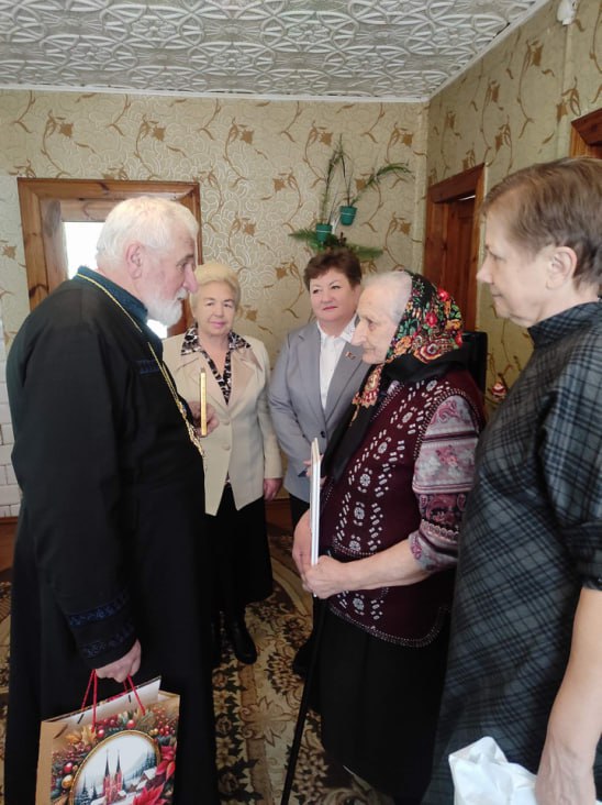 В рамках данной акции гости поздравил жительницу агрогородка Новая Попина Нину Тарасовну Кузьмич с 90-летним юбилеем, Новым годом и с наступающим Рождеством Христовом. Батюшка поблагодарил Нину Тарасовну за многолетний труд в храме и пожелал здоровья, душевного покоя, радость от близких и тепла в сердце, мира и Божией благодати на каждый день.