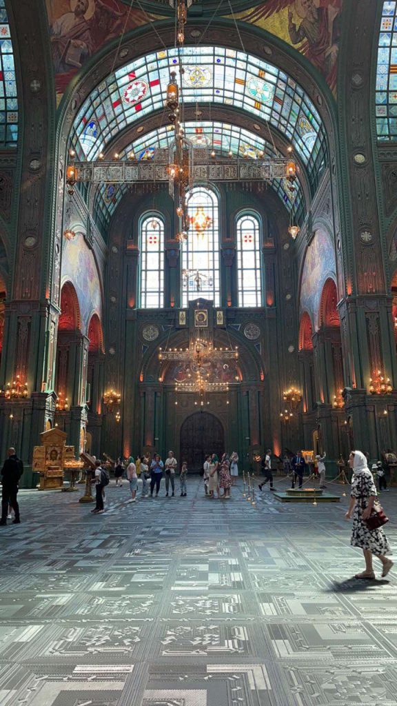 Величием встретил нас главный храм вооружённых сил России. Он восхищает элегантной, нарядной, но в тоже время строгой архитектурой, величием и непобедимостью веры во Христа. Побывали в Зачатьевском ставропигальном женском монастыре, где находится несколько святынь, одна из них — икона Божией матери Услышательница, пояс Пресвятой Богородицы, данная реликвия находится в специальном ковчеге.