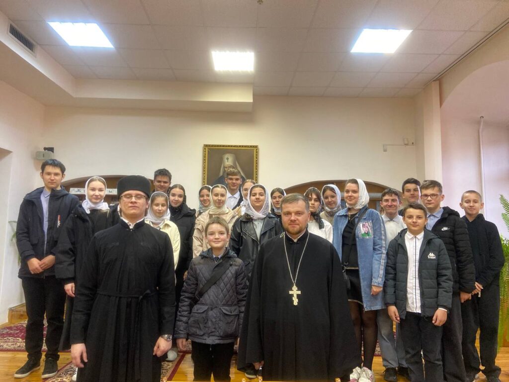 После завершения богослужения в семинарской библиотеке состоялась встреча с сотрудником библиотеки Назаром Флорей, который рассказал о Минской духовной семинарии. Эта встреча стала прекрасной возможностью для молодежи узнать более подробно об учебном процессе, духовной жизни и быте семинаристов, а также задать свои вопросы.