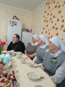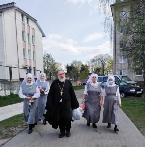 В дни Светлой Пасхальной седмицы 4.05 — 05.05.2021 года сестры милосердия вместе с настоятелем Сретенского храма г.Дрогична, благочинным церквей Дрогичинского округа протоиереем Иоанном Пинчуком посетили два детских дома семейного типа в г.Дрогичине и отделение сестринского ухода Радостовской сельской больницы, где находится 16 одиноких престарелых граждан.