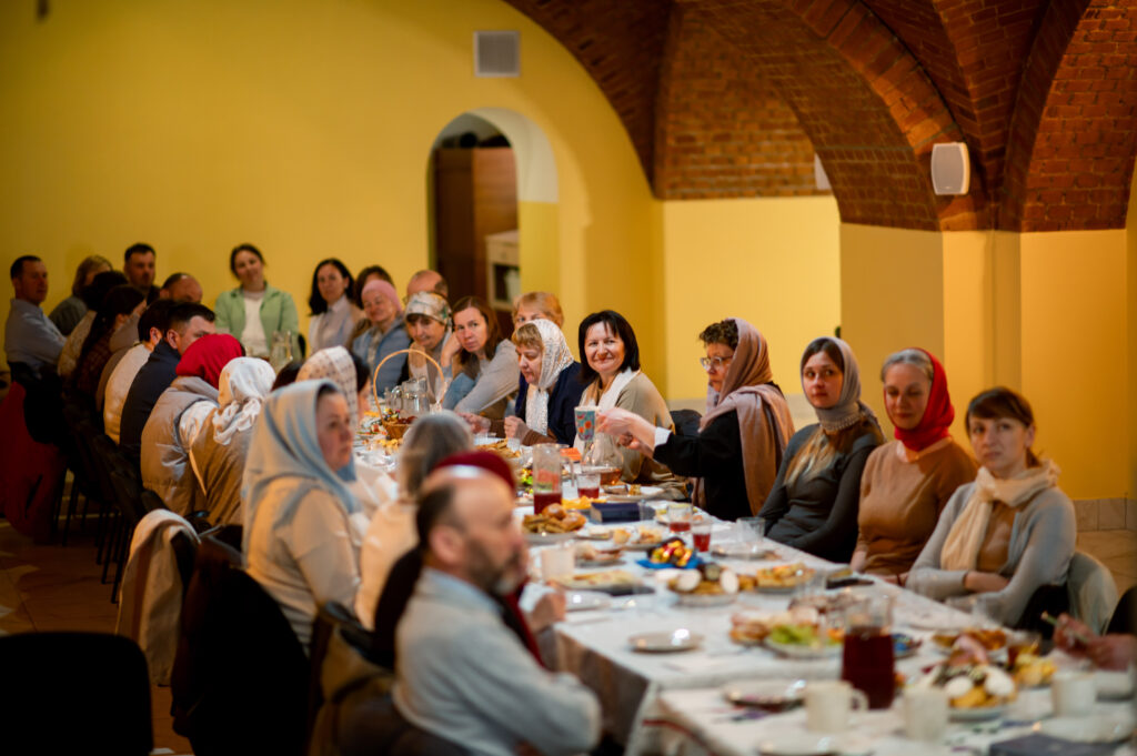 Участники объединились за общим столом, чтобы разделить трапезу и радость общения. Руководитель группы, священник Евфросиниевского храма иерей Димитрий Гречко поздравил всех с Пасхой и праздником святых жен-мироносиц, пожелав участникам пасхальной радости, мира и вдохновения на изучении Библии и духовную жизнь.