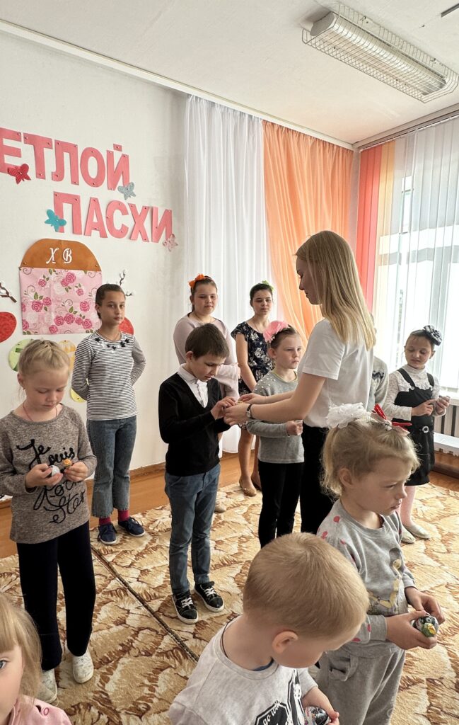 13 мая 2024 г. участники молодежного православного братства в честь святых первоверховных апостолов Петра и Павла, действующего при храме преподобной Евфросинии Полоцкой в г. Дрогичине, в сопровождении клирика храма, руководителя молодежного братства священника Димитрия и матушки Наталии Гречко посетили Дрогичинский районный социально-педагогический центр, чтобы поздравить его воспитанников с Пасхой Христовой.