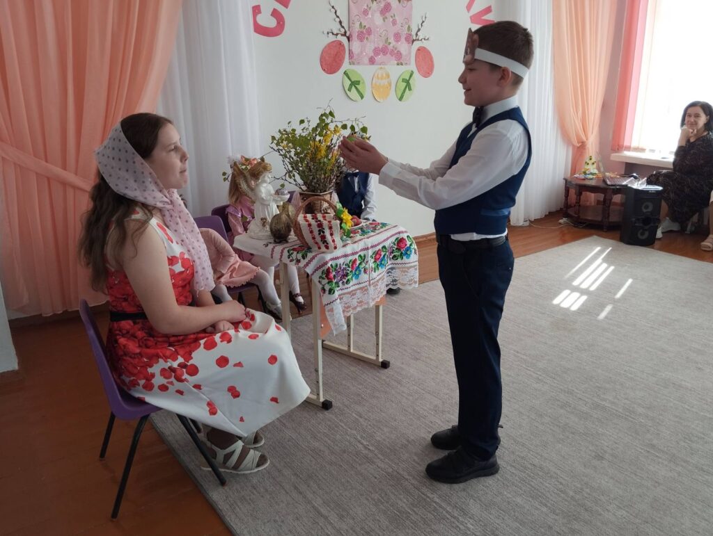Дети подготовили небольшой праздничный концерт, пели песни, читали стихи, танцевали, разыграли пасхальную сценку. В конце встречи ребята подарили гостям пасхальные сувениры, сделанные своими руками.