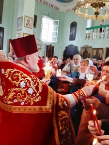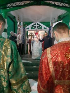 Служба закончилась освящением яств на улице, во время которого отец Геннадий поздравил всех с праздником.