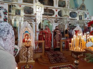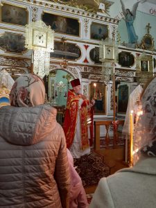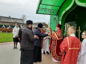 Великая вечерня началась со встречи благодатного огня, который привезли благочинный церквей Кобринского округа протоиерей Сергий Утрата и иерей Артемий Дячок. Прихожане с благоговением и трепетом принимали благодатный огонь, зажигая свои свечи и лампадки. Торжественное богослужение возглавил протоиерей Сергий в сослужении протоиерея Геннадия, иерея Артемия, иерея Александра, иерея Леонида. После службы был совершен Крестный ход. После него на прицерковной площади учащиеся воскресной школы поздравили прихожан храма, жителей и гостей агрогородка с праздником, прославляя Воскресение Христово. Отец Геннадий сказал слова напутствия и назидания, после чего вернулись в храм.