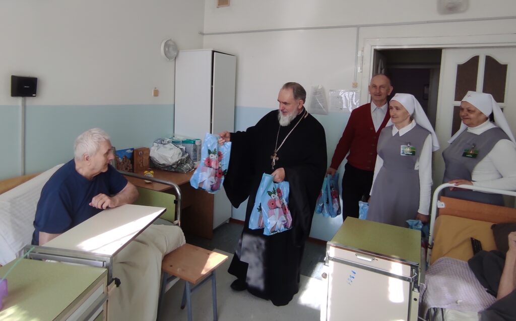 17 апреля 2026 года благочинный Дрогичинского округа, настоятель прихода храма преподобной Ефросинии Полоцкой в городе Дрогичине протоиерей Иоанн Пинчук с представительницами сестричества сестёр милосердия в честь преподобномученицы великой княгини Елисаветы Фёдоровны, действующего при храме, посетили Радостовскую сельскую больницу, отделение социальных коек. Они  поздравили всех, находящихся на социальной койке, со Светлым праздником Христова Воскресения и поделились частичкой пасхальной радости с теми, кто вынужден встречать праздник вдалеке от дома. Отец Иоанн и сёстры уделили внимание каждому пациенту и выразили пожелания здравия телесного и душевного, помощи Божией и скорейшего выздоровления, а медицинскому персоналу — сил и терпения в их нелёгком труде. Каждому пациенту были вручены пасхальные угощения. Также были переданы наборы первой необходимости, сформированные на основании запросов больницы, приобретенные на пожертвования неравнодушных прихожан Ефросиниевского храма.