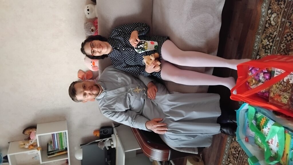 21 и 22 апреля 2025г. настоятель храма Сретения Господня иерей Александр Кучма и клирик храма иерей Александр Полоско поздравили детей инвалидов, детей, воспитывающихся в домах семейного типа, а также отцов, которые самостоятельно воспитывают детей без жен, и нуждающихся семей с праздником Светлого Христова Воскресения.
