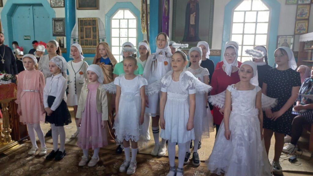 Настоятель храма иерей Леонид Коледа сердечно поздравил детей, их родителей, преподавателя воскресной школы и всех прихожан с великим праздником Пасхи Христовой. В своем слове он отметил важность участия детей в богослужебной жизни прихода, особенно в церковном пении, которое помогает юным христианам глубже воспринимать веру. В конце все дети получили сладкие подарки из рук священника.