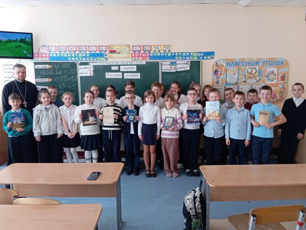В рамках празднования Дня православной книги клирик храма Сретения Господня в г. Дрогичине иерей Александр Полоско 12 марта 2026г. посетил учащихся 3 «А» класса средней школы №1 г. Дрогичина. Тема встречи: «По страницам детской православной книги».