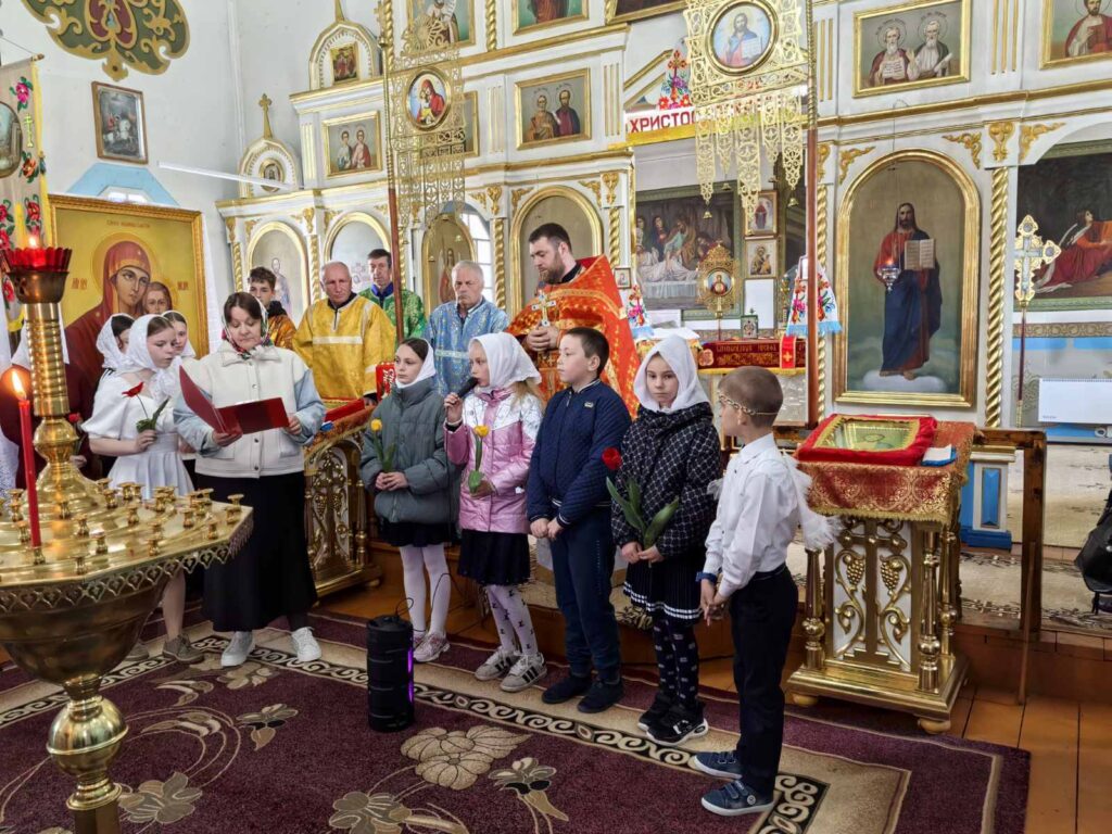 26 апреля 2026 г. в День святых жен-мироносиц в храме Покрова Пресвятой Богородицы в агрогородке Радостово, по окончанию Божественной Литургии, воспитанники воскресной школы подготовили небольшой концерт и поздравили прихожанок с праздником. Дети в стихах прославляли Воскресшего Христа и женщин, которые и сегодня несут в мир сострадание и любовь.