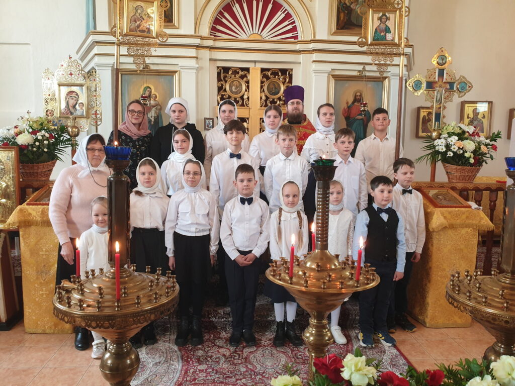 26 апреля 2026 года, в праздник жен-мироносиц, после Божественной Литургии воспитанники Воскресной школы при храме Успения Пресвятой Богородицы в деревне Перковичи поздравили прихожан с праздником Светлой Пасхи и днём жен-мироносиц. Звучали стихотворения, песни и добрые пожелания.
