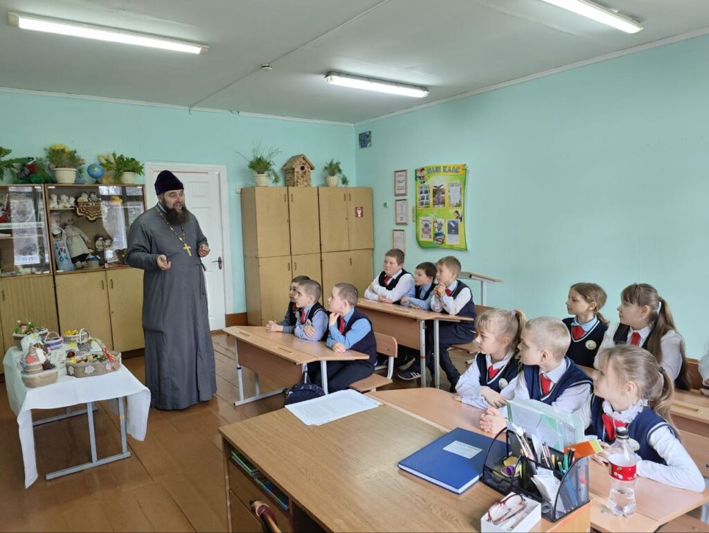 13 апреля 2026 г. у учащихся начальных классов Детковичской средней школы прошел урок Православия «Пасхальный благовест» с участием настоятеля храма Покрова Пресвятой Богородицы в аг. Детковичи иерея Иоанна Бычика. Священник рассказал младшим школьникам историю, о символах и традициях Великого праздника Светлой Пасхи. Учащиеся поздравили отца Иоанна с праздником и спели пасхальную песню. Встреча со священником была познавательной, интересной и теплой. В конце мероприятия отец Иоанн вручил ребятам сладкие подарки.