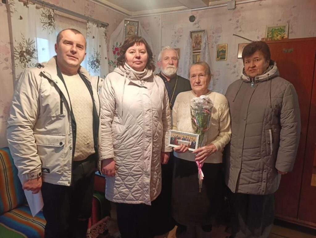 23 декабря 2025 г. настоятель храма Преображения Господня в аг. Новая Попина протоиерей Василий Михновец вместе с председателем Попинского сельисполкома Светланой Дышко поздравил с 85-летним юбилеем певчую церковного хора Раису Иосифовну Лущик. Священник Василий Михновец поблагодарил Раису Иосифовну за многолетний труд в храме и пожелал юбилярше крепкого здоровья, крепости душевных и телесных сил, неоскудевающей радости о Господе, мира в сердце и теплой заботы близких.
