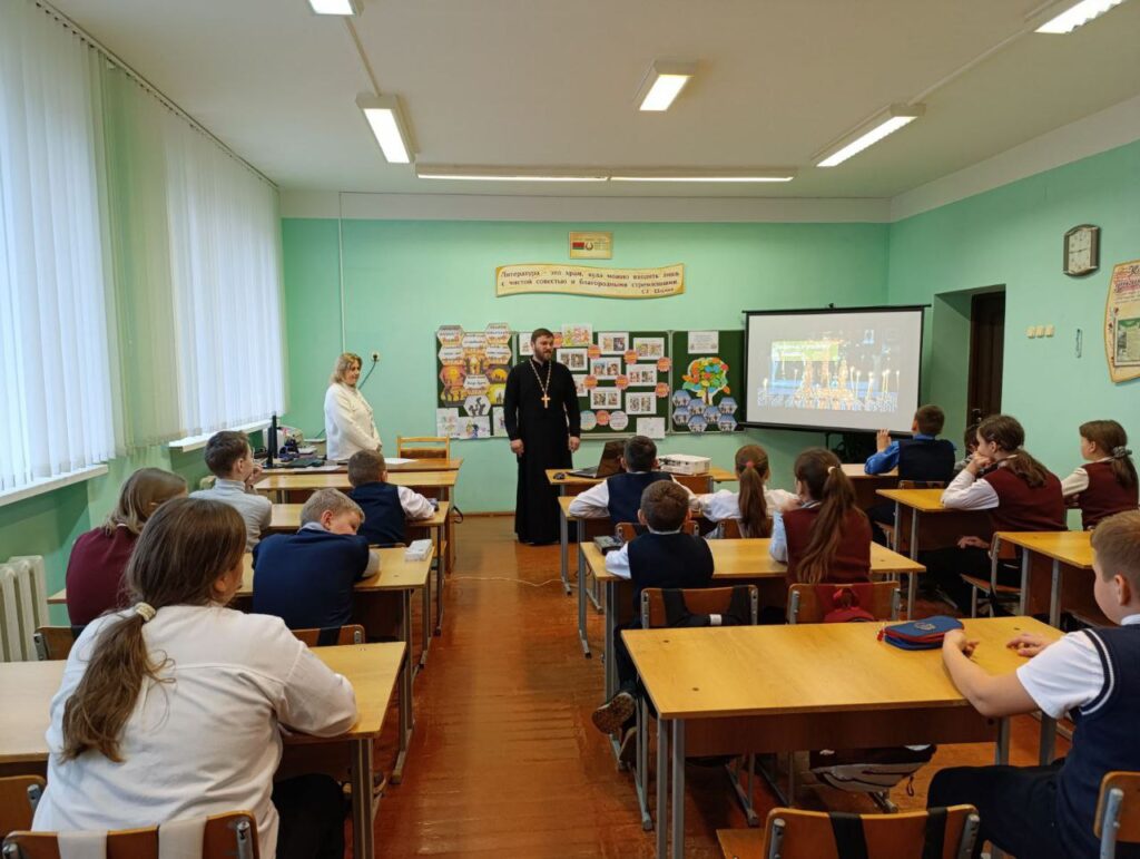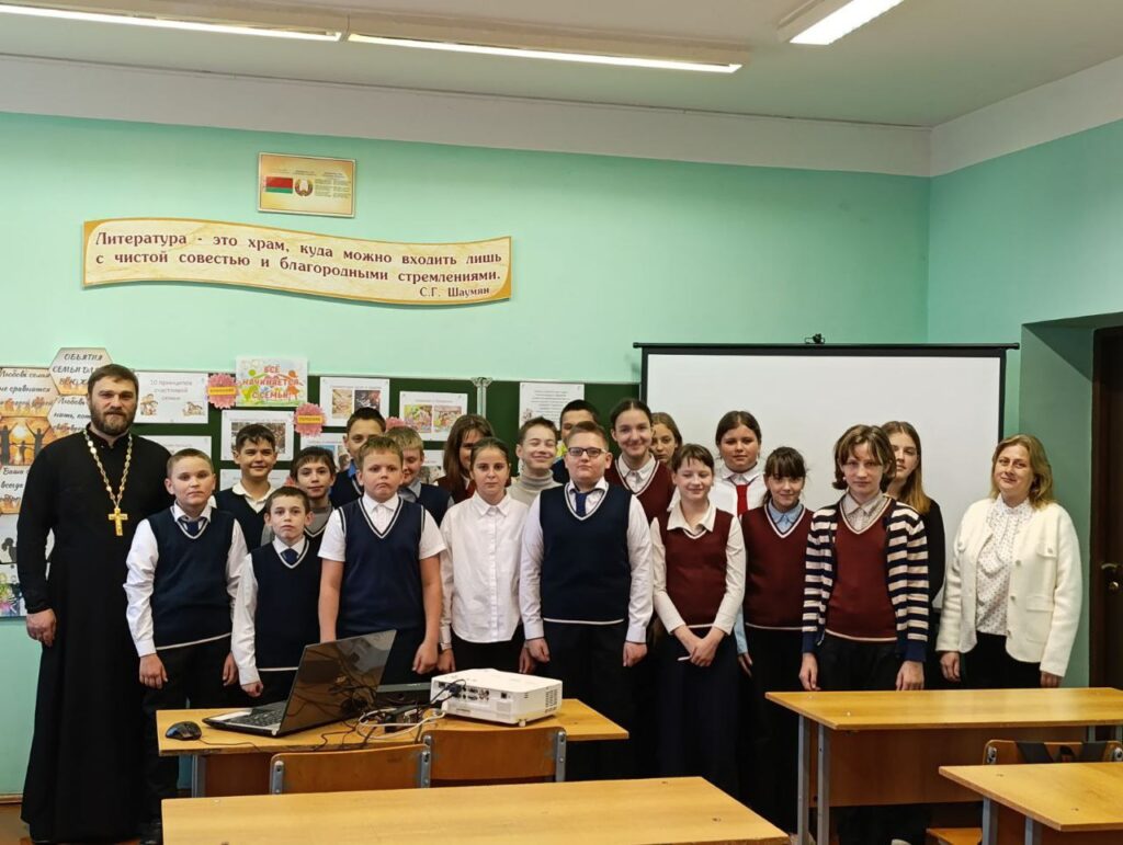 27 ноября 2025 г. состоялся разговор учеников 6 класса ГУО «Хомская средняя школа» с настоятелем прихода храма Покрова Пресвятой Богородицы аг. Хомск иереем Иоанном Барановским на тему «Прочная семья и счастливая семейная жизнь».