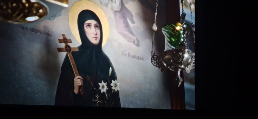 25 февраля 2025 г. в кинотеатре «Беларусь» г. Дрогичина состоялся просмотр документального фильма «Обитель святой Евфросинии», созданный на киностудии «Беларусьфильм» к празднованию 900-летия Спасо-Евфросиниевского Полоцкого монастыря. На просмотре присутствовал настоятель храма святого Архангела Михаила в агрогородке Осовцы иерей Леонид Куровский вместе со своими юными алтарниками. Зрители внимательно слушали подробный рассказ настоятельницы монастыря о жизни и трудах преподобной Евфросинии на полоцкой земле, о её путешествии в святой город Иерусалим.