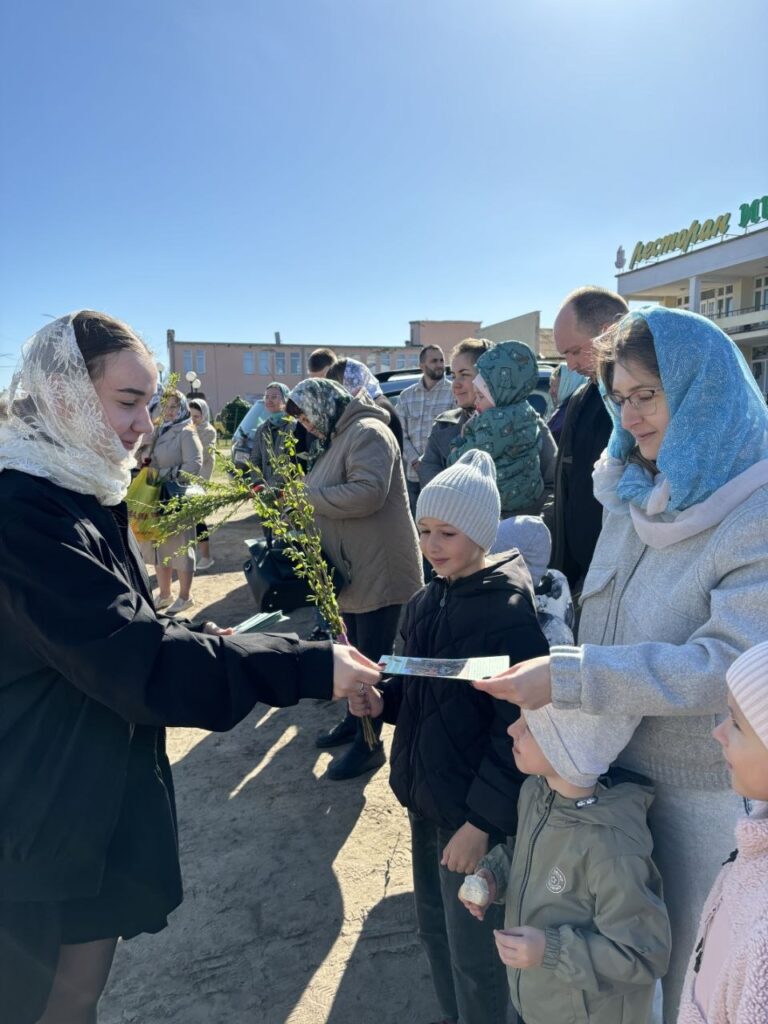 5 апреля 2026г. по благословению настоятеля храма Сретения Господня г.Дрогичина иерея Александра Кучмы молодежное братство в честь святителя Нектария Эгинского провело просветительскую акцию «Вход Господень в Иерусалим».