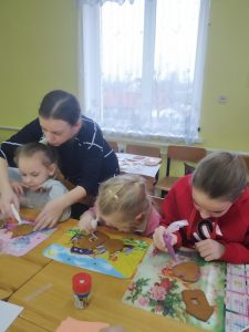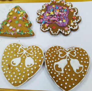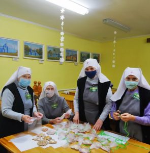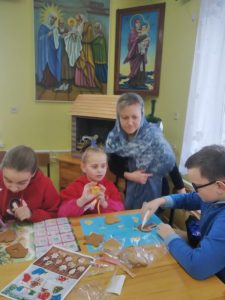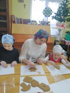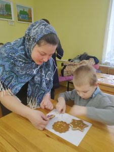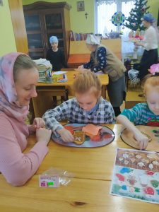 2 января 2021 года сестры милосердия Сретенского храма г.Дрогичина вместе с участниками семейной школы родителей и детей  провели занятие по расписыванию Рождественских пряников.  Рождественские имбирные пряники сестры милосердия испекли заранее,  следую всем традициям их выпекания. Тесто для пряников замешивали  на натуральном меде, чтобы вкусный пряничный аромат ассоциируется с детством и волшебством и чтобы пряники имели приятный оттенок. Пряники у нас не простые, а имели причудливые формы в виде звездочек, человечков, домиков, елочек, рукавичек.  Приготовленные с любовью, пряники получились еще и мягкие, воздушные, ароматные и очень вкусные.
