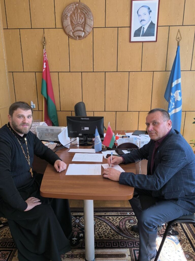 16 февраля 2026 г. в Хомском сельисполкоме прошла рабочая всреча настоятеля прихода храма Покрова Пресвятой Богородицы в аг. Хомск иерея Иоанна Барановского с председателем исполкома Заверачем А.Н. Обсудили планы сотрудничества прихода и исполнительной власти агрогородка на 2026 г. Отец Иоанн поблагодарил Александра Николаевича за активное участие в приходской жизни, за помощь в благоустройстве, в решении других вопросов, возникающих у настоятеля и прихожан.