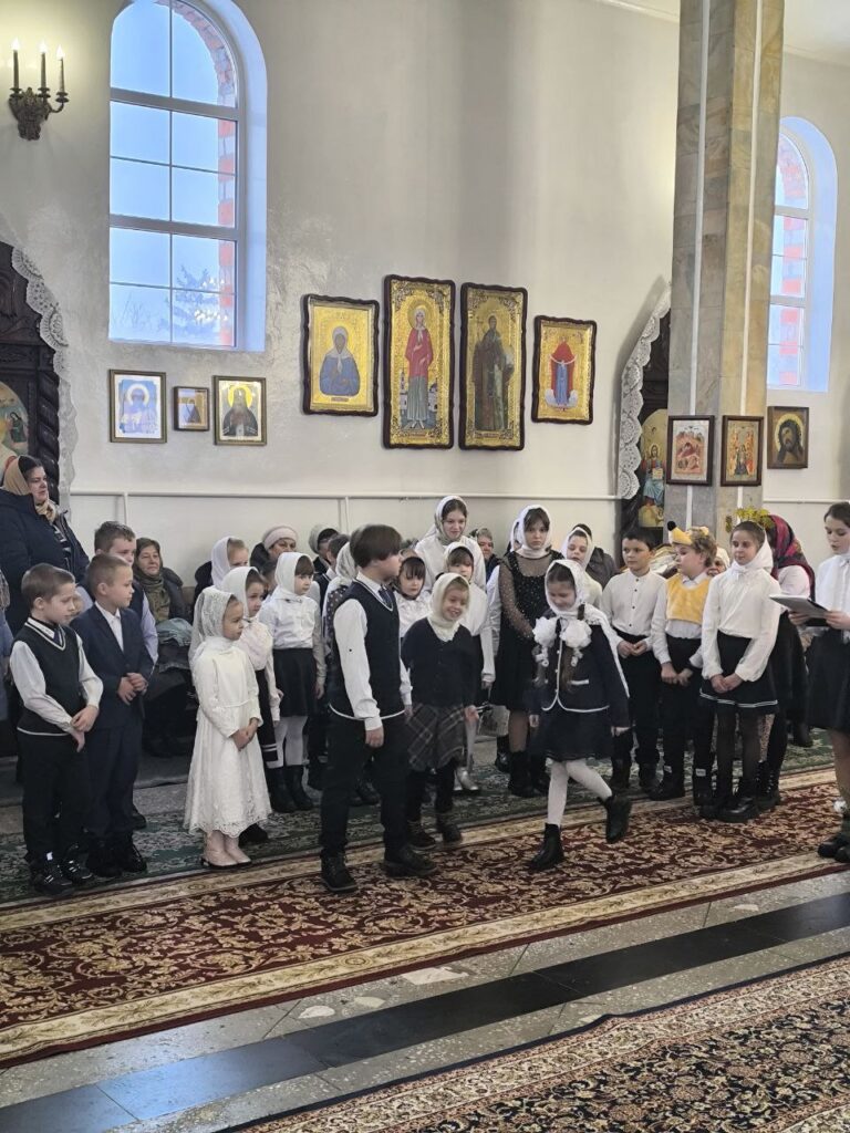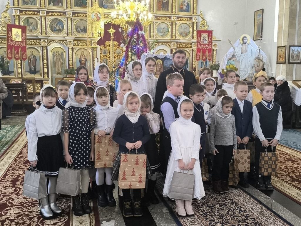 На торжественном выступлении присутствовали прихожане и родители, а после выступления настоятель храма иерей Иоанн Барановский поблагодарил детей за труды в славу Божию, пожелал всем радости, здоровья, Божией милости, а также вручил сладкие подарки детям.