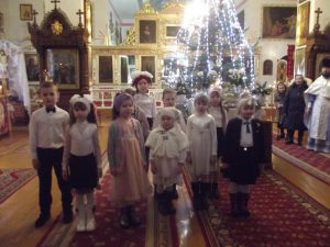 Со светлым праздником Рождества Христова 10 января по окончании Божественной литургии воспитанники воскресной школы при храме Воскресения Христова в г.п. Антополь поздравили настоятеля протоиерея Алексия Микулича, своих родителей и прихожан праздничным выступлением. Ребята исполняли песни и читали стихи, делясь со взрослыми своей детской радостью от встречи с Рождеством. Свой вклад в Рождественское поздравление внесла многодетная семья Савчук, исполнив всей семьёй рождественскую песню.