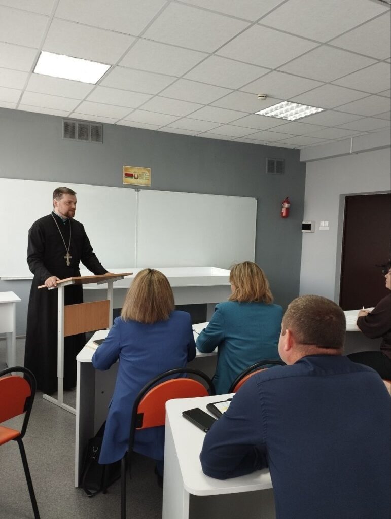Иерей Александр рассказал о совместных проектах, уроках, внеклассных мероприятиях и экскурсиях, которые уже реализуются на практике. Он подчеркнул, что изучение православной культуры и традиций родного края в тандеме с педагогическим коллективом школы дает наиболее полное представление о духовных ценностях и помогает воспитать в детях истинную любовь к Отечеству.