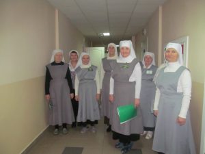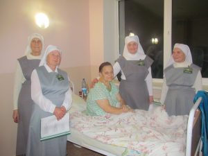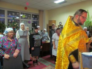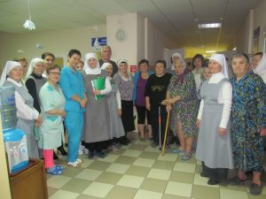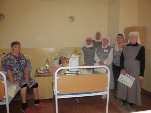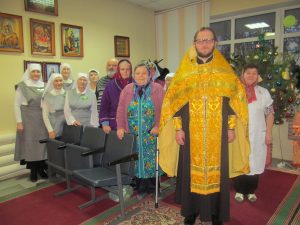 Сестры милосердия прошли по палатам хирургического и терапевтического отделения с Рождественскими поздравлениями и песнопениями. Все пациенты со слезами на глазах встречали сестер, вместе с ними продолжали шагать по всему отделению и кто мог подпевали и славили Рожденного Спасителя.