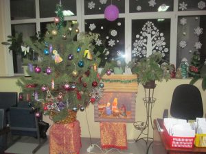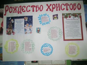 Часовня тоже к праздникам была украшена Рождественской елочкой и вертепом, а на стенде возле входа в часовню красочное поздравление, в котором сестры рассказали о празднике Рождества Христова.