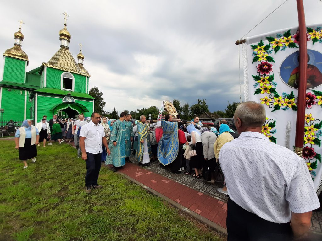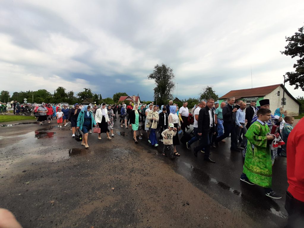 После Литургии священнослужители, прихожане и паломники отправились Крестным ходом по улицам агрогородка. Шествие сопровождалось пением акафиста Божией Матери пред Почаевской иконой, иных духовных песнопений.