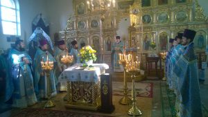 Божественную литургию возглавил благочинный церквей Дрогичинского округа протоиерей Иоанн Пинчук, которому сослужили настоятель храма иерей Николай Манчук, священники Дрогичинского и Ивановского благочиний. После сугубой ектении отец благочинный вознес ко Господу молитву о мире на Украине. Также за Божественной литургией были вознесены сугубые молитвы об упокоении блаженной памяти Высокопреосвященных Иосифа (Семашко), митрополита Литовского и Виленского, Василия (Лужинского), архиепископа Полоцкого и Витебского, Антония (Зубко), архиепископа Минского и Бобруйского, и иных их сподвижников, потрудившихся в деле воссоединения белорусских униатов с Матерью-Церковью. Богослужебные песнопения исполнил местный хор.