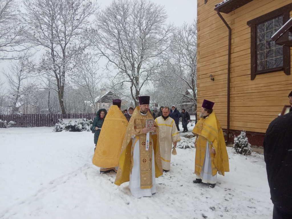 По окончании богослужения был совершен крестный ход вокруг храма и молебен. После уставных многолетий к прихожанам обратился настоятель храма Преображения Господня в агрогородке Новая Попина протоиерей Василий Михновец, который поздравил настоятеля и прихожан с праздником.