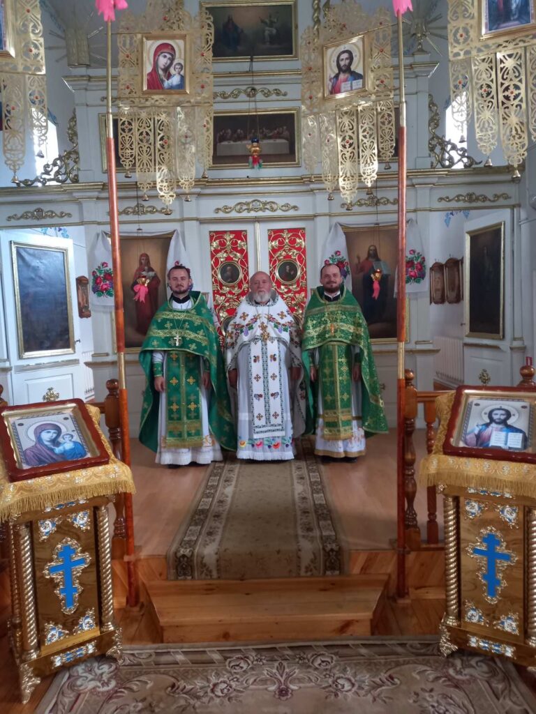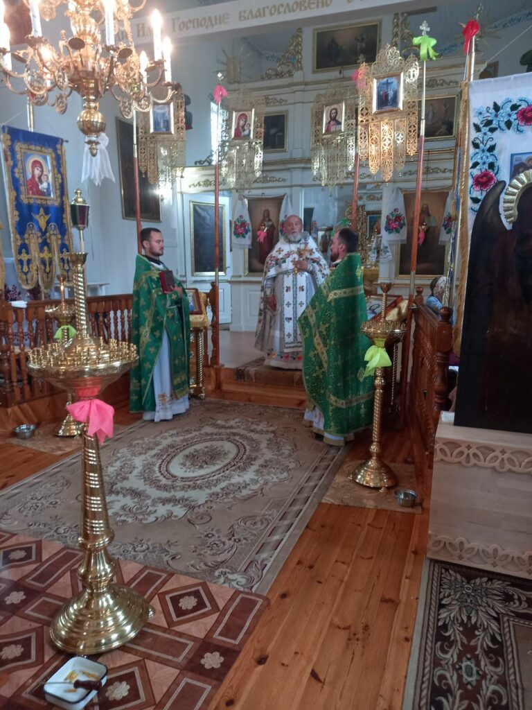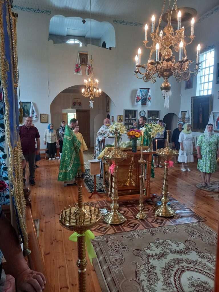 Богослужение возглавил настоятель прихода храма святой Живоначальной Троицы в аг. Бездеж протоиерей Геннадий Ворон. Сослужили: настоятель прихода храма святых равноапостольных царя Константина и царицы Елены в д. Завершье иерей Александр Зинович и настоятель прихода храма святого великомученика Георгия Победоносца в дер. Воловель иерей Сергий Остапович.