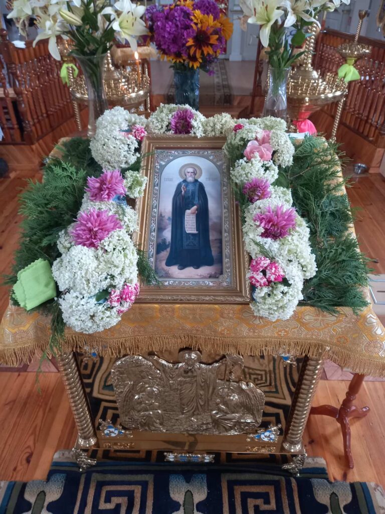По окончании богослужения был совершен молебен, во время которого была вознесена молитва ко святому прп. Сергию Радонежскому, после чего все молящиеся были окроплены святой водой.