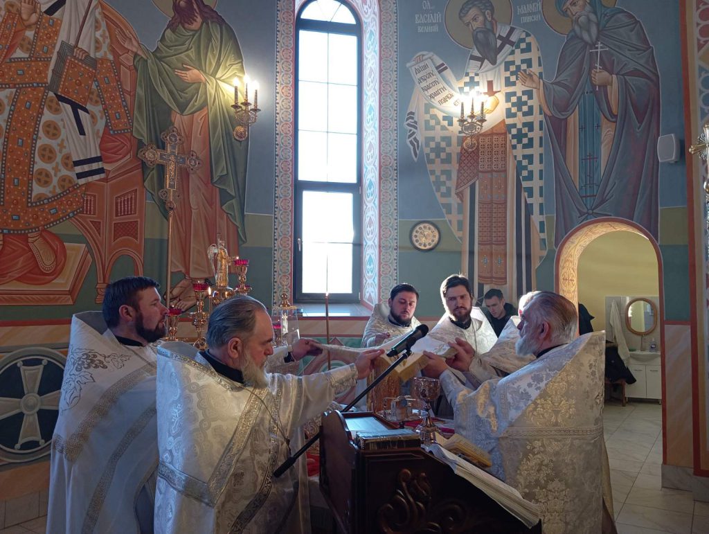 Богослужение возглавил настоятель Собора Феодора Тирона в г. Пинске протоиерей Михаил Пинчук. Сослужили: благочинный церквей Дрогичинского округа, настоятель храма преподобной Евфросинии Полоцкой в г. Дрогичине протоиерей Иоанн Пинчук; настоятель храма святых благоверных князей-страстотерпцев Бориса и Глеба в дер. Накрышки, Дятловского района протоиерей Николай Пинчук; клирик Собора Феодора Тирона иерей Сергий Пинчук; настоятель храма Рождества Пресвятой Богородицы в дер. Вавуличи иерей Александр Веремейчик; клирик храма преподобной Евфросинии Полоцкой иерей Димитрий Гречко.