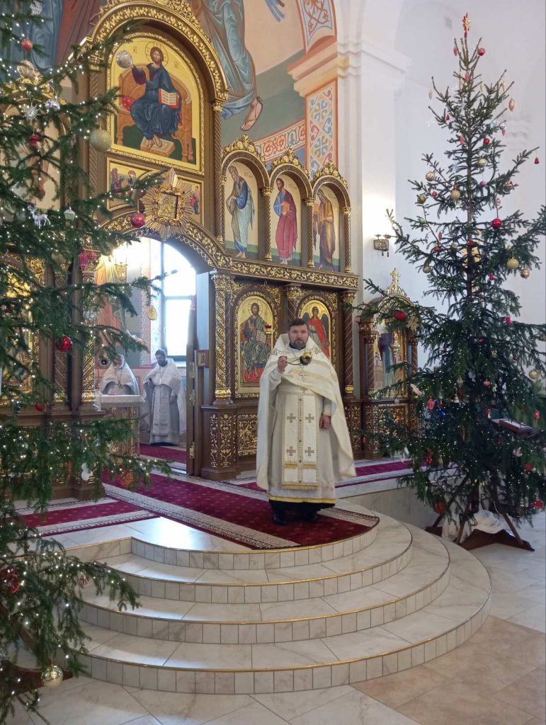 По окончании Литургии протоиерей Михаил обратился к молящимся со словом поздравления с Рождеством Христовым и назидания.