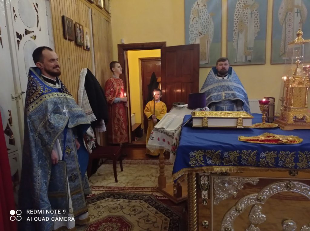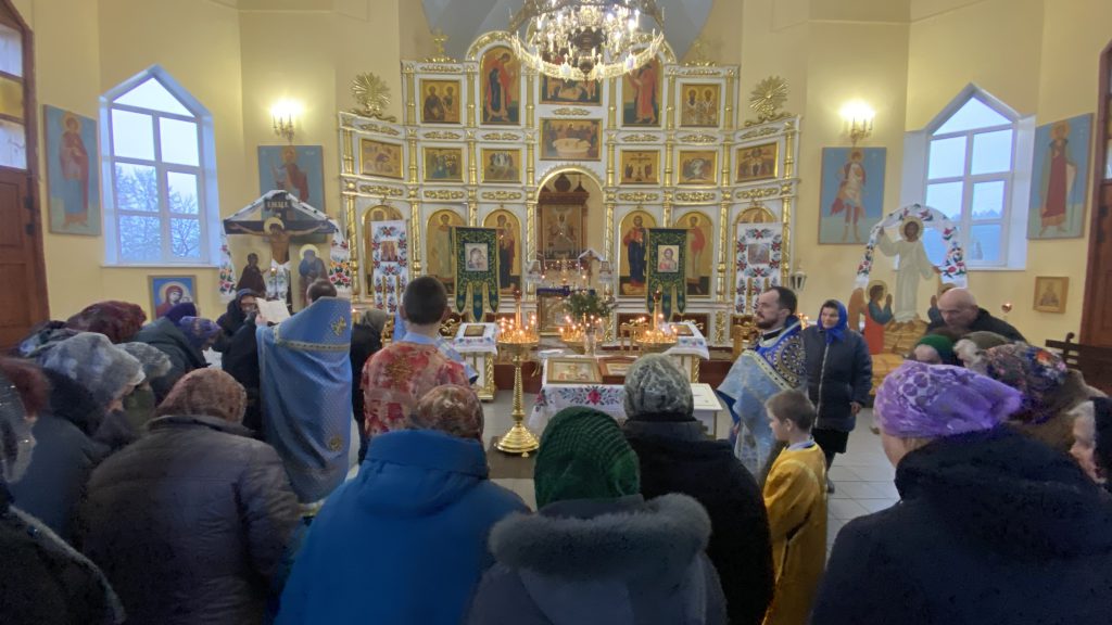 Божественную Литургию возглавил настоятель храма иерей Александр Зинович в сослужении настоятеля храма апостола и евангелиста Луки иерея Александра Чилея и настоятеля прихода храма Рождества Пресвятой Богородицы в д. Вавуличи иерея Александра Веремейчика.