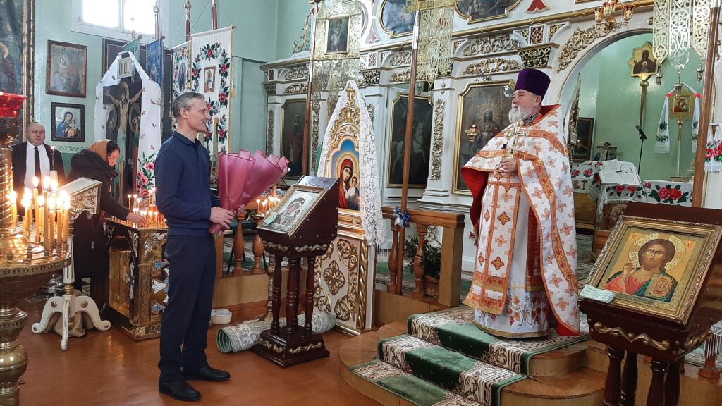 В этот день звучали слова благодарности за всестороннее развитие приходской деятельности вверенного прихода. За то, что батюшка сопрягает пастырские труды с работой по благоустройству храма и просветительской деятельности в агрогородке.