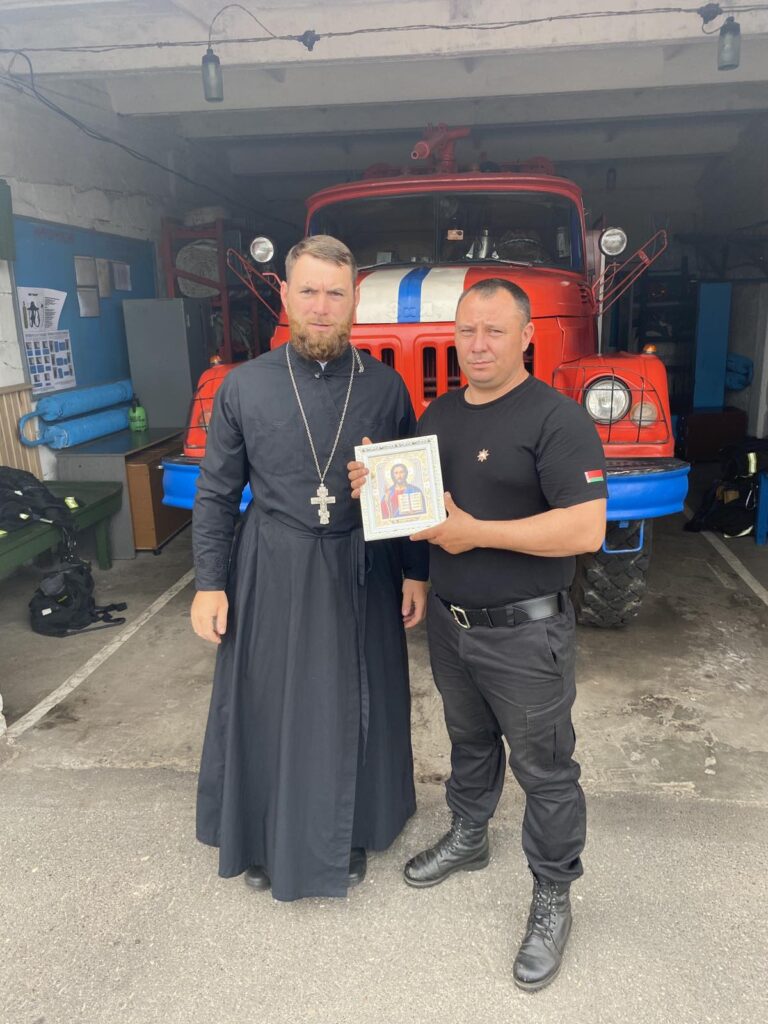 Сегодня 4 июня 2024г. настоятель храма Покрова Пресвятой Богородицы в аг. Радостово иерей Леонид Коледа посетил аварийно-спасательный пост МЧС, который находится на территории прихода.
