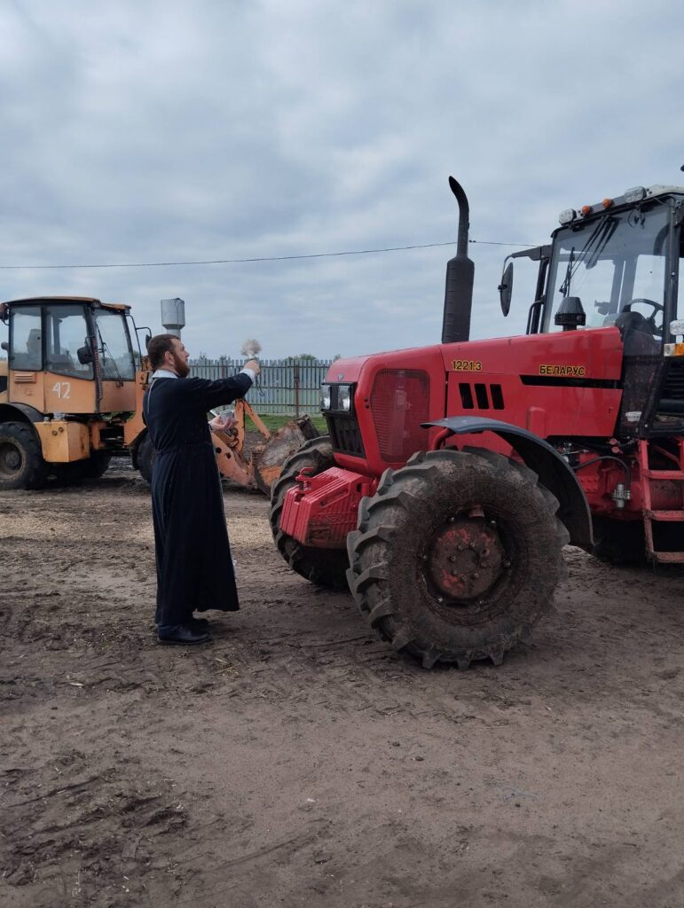 Священник благословил тружеников на их великий благородный труд, окропил сельхозтехнику святой водой и пожелал всем Божией помощи в работе.