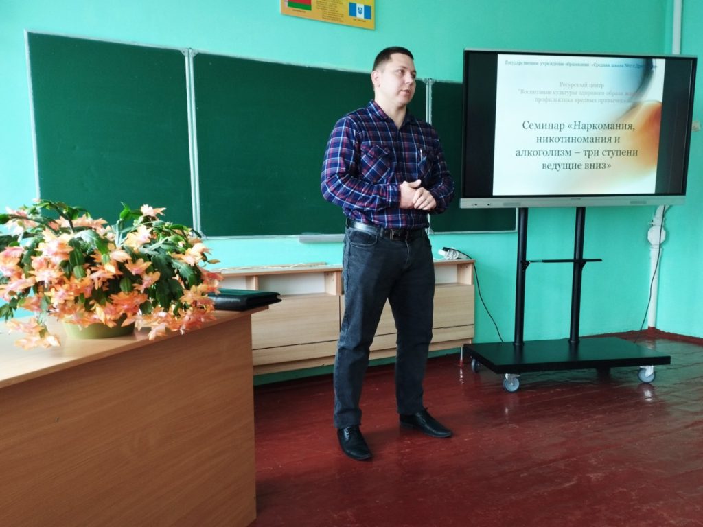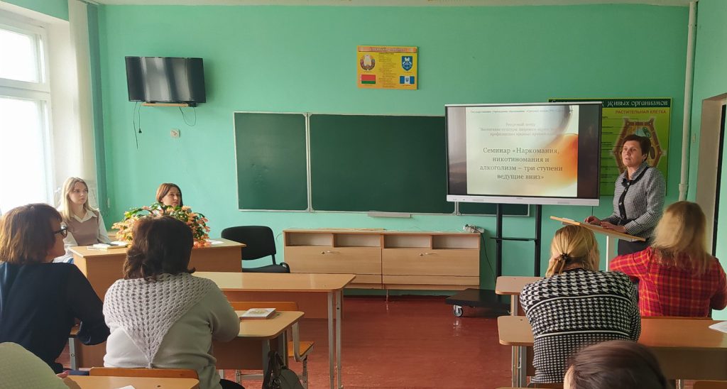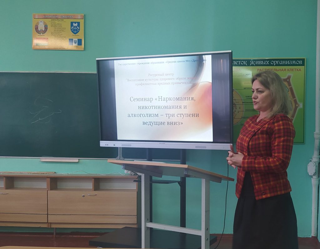 17 ноября 2022 года на базе Средней Школы №2 г. Дрогичина проведен межведомственный семинар по теме: «Наркомания, никотиномания и алкоголизм — три ступени, ведущие вниз», в рамках работы ресурсного центра по воспитательной работе «Воспитание культуры здорового образа жизни, профилактика вредных привычек».