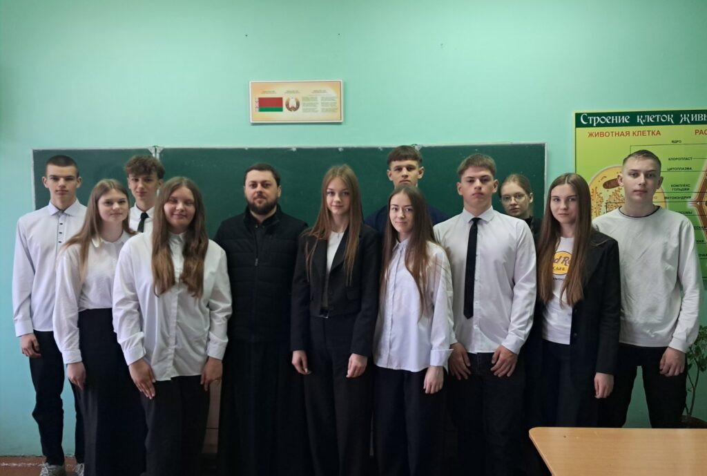 23 мая 2025 г. в средней школе №2 г. Дрогичина прошла встреча священника храма прп. Евфросинии Полоцкой в г. Дрогичине иерея Димитрия Гречко учениками 11 класса.