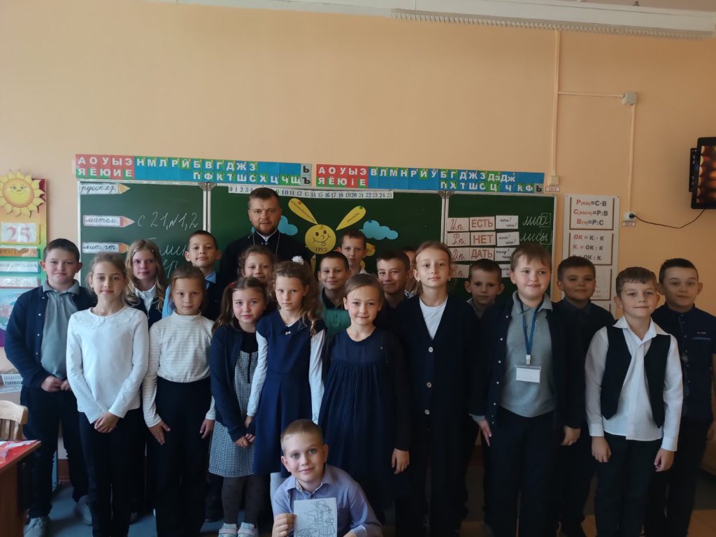 Господня в г. Дрогичине иерей Александр Полоско провел урок для учащихся 4 «А» класса.