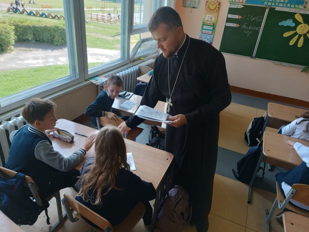 Господня в г. Дрогичине иерей Александр Полоско провел урок для учащихся 4 «А» класса.